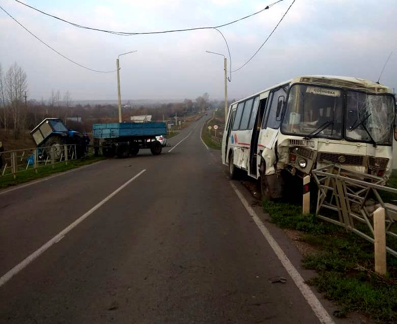 В Тамбовской области рейсовый автобус столкнулся с трактором
