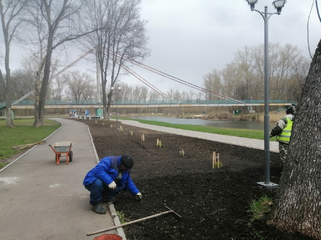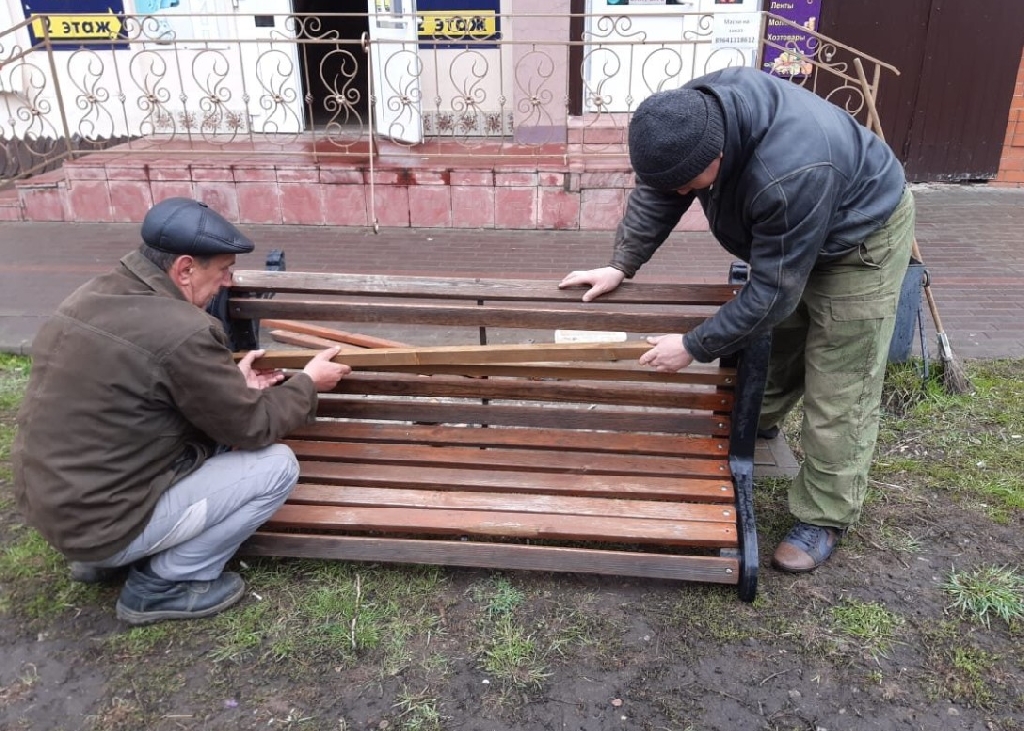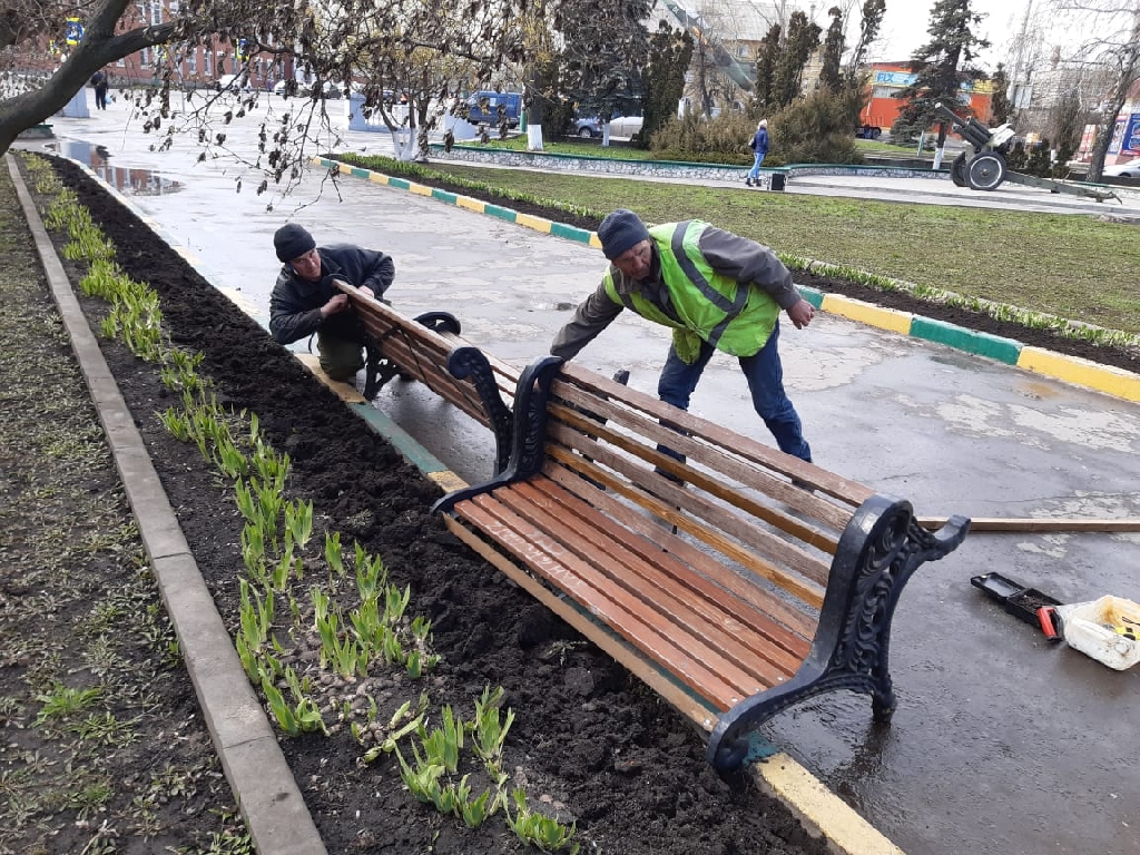 Сотрудники «Зеленхоза» отремонтировали скамейки в скверах Мичуринска и побелили деревья