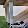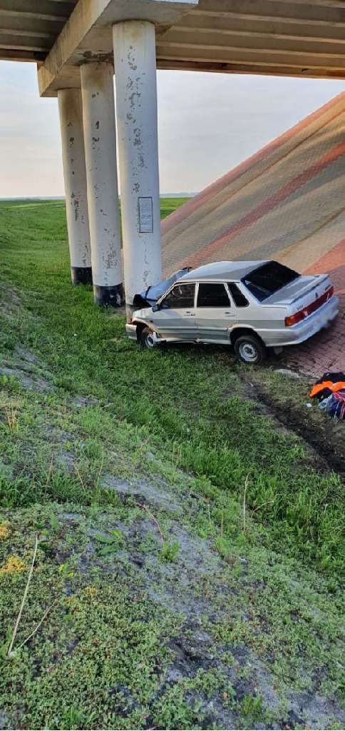 Водитель не справился с управлением, и автомобиль врезался в опору моста