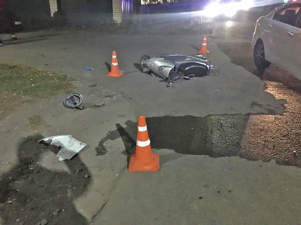 В Мичуринске на перекрёстке столкнулись автомобиль и скутер, которым управлял подросток