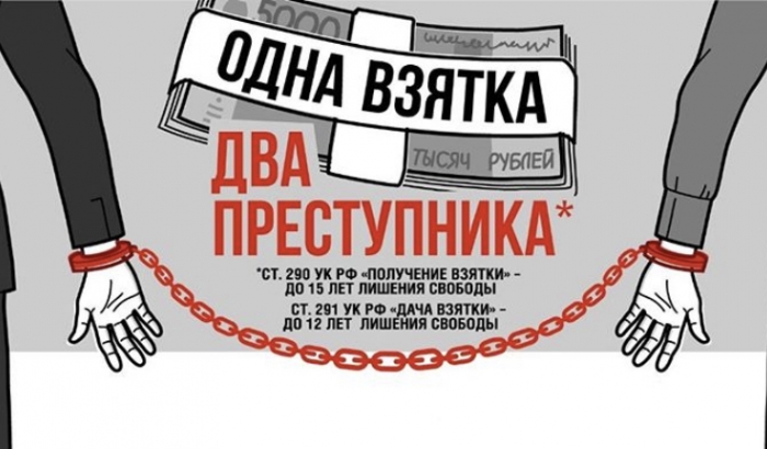 Получение взятки должностным лицом, а также дача взятки должностному лицу лично или через посредника, влечет наказание в виде наложения штрафов в крупных размерах, либо исправительных работ.