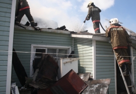 К моменту приезда пожарных деревянный дом общей площадью около 100 кв.м горел открытым пламенем. На тушении пожара было задействовано 3 пожарных расчёта.