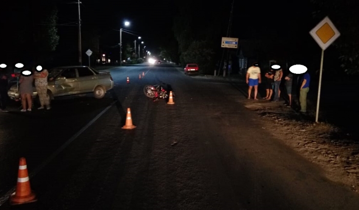 На улице Лаврова столкнулись легковушка и мотоцикл