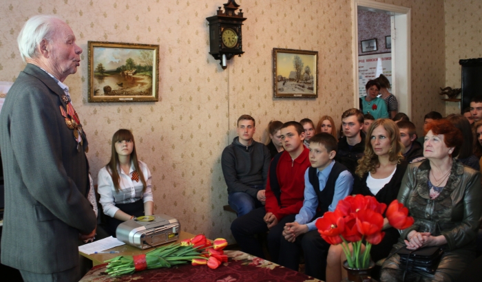 На встречу со школьниками пригласили ветерана войны Александра Васильевича Рязанова, который героически сражался в годы Великой Отечественной и дошёл до Праги. Александр Васильевич рассказал ребятам о событиях тех страшных лет и напомнил, как важно знать и помнить нашу историю - ведь без памяти о прошлом не может быть достойного будущего.