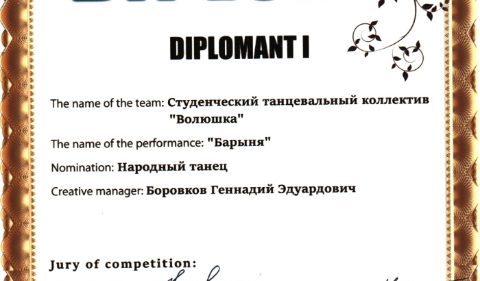 Дипломантами конкурса также стали художественный руководитель «Волюшки» - заместитель директора Центра культуры и досуга вуза Геннадий Боровков и участница Active Style - магистрант Социально-педагогического института Анастасия Макарова за содействие в постановке хореографии.