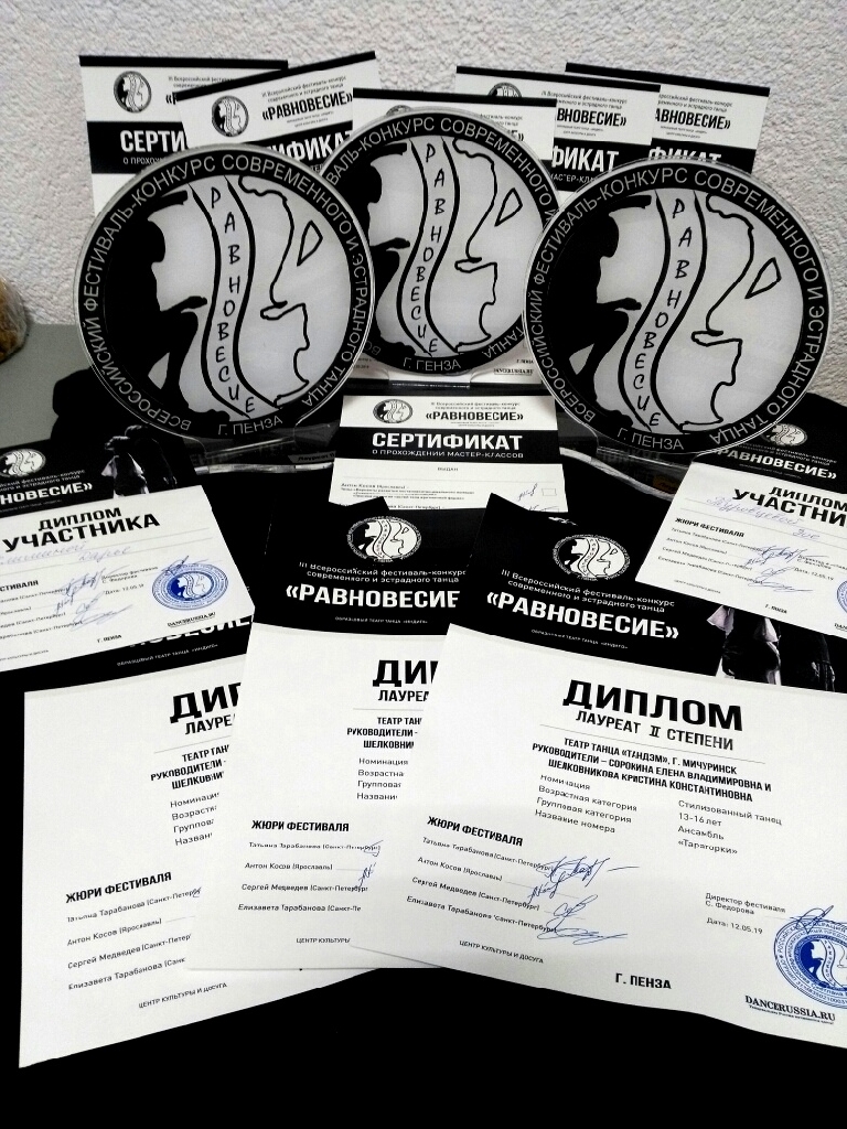 Мичуринский театр танца «ТанДэМ» (Танец Движение это Мы), которым руководят Кристина Шелковникова и Елена Сорокина, привёз награды с третьего Всероссийского фестиваля-конкурса современного и эстрадного танца «Равновесие», который проходил в Пензе. Его организаторами выступили МБОУ «Центр культуры и досуга» и образцовый театр танца «Индиго».