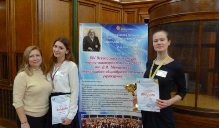 Ученицы 10 класса средней школы №2 Софья Попова и Дарья Толкачева вошли в число лучших школьников страны на XIV Всероссийском конкурсе научно-исследовательских работ обучающихся общеобразовательных организаций, инициированном Благотворительным фондом наследия Менделеева. Вместе со своим научным руководителем, учителем химии Ольгой Ушаковой, они побывали в Москве на церемонии награждения, которая состоялась в МГУ имени Ломоносова.