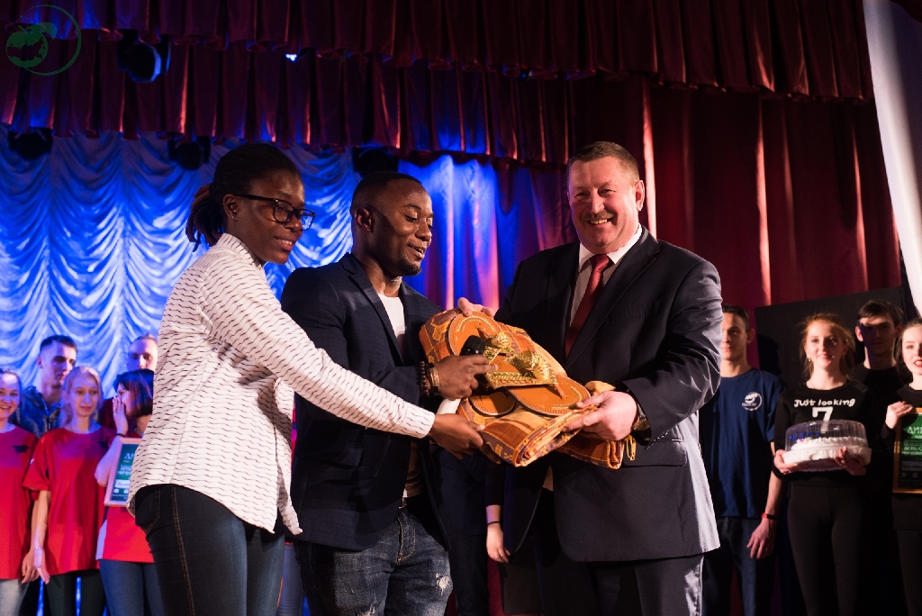 В свою очередь студенты подготовили ректору неожиданный и приятный сюрприз. В знак глубокого уважения воспитанник Института экономики и управления Гуэла Гуе Сергес преподнес в подарок Вадиму Бабушкину африканский национальный костюм.