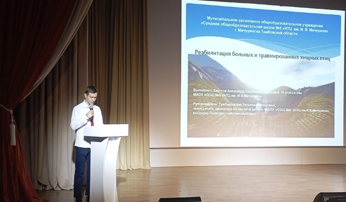 На пленарном заседании выступили представители школы №5 «НТЦ им. И.В. Мичурина» Данила Голованчиков, который рассказал о значении присвоения статуса наукограда нашему городу и его роли в развитии агропромышленного комплекса страны, и Александр Хаустов, который поделился итогами работы по реабилитации больных и травмированных хищных птиц.
