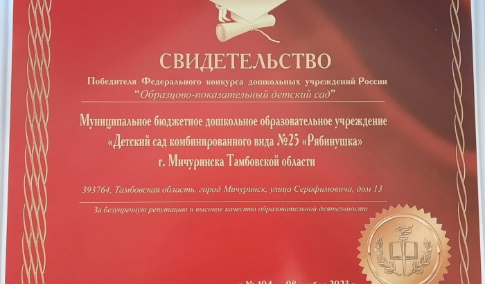 Детский сад №25 «Рябинушка» стал победителем федерального конкурса "Образцово-показательный детский сад".