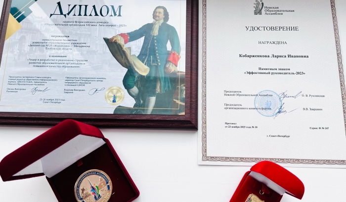 Детский сад стал лауреатом финального этапа Всероссийского конкурса "Образовательная организация XXI века. Лига лидеров – 2023". В рамках форума Лариса Ивановна приняла участие в работе секционного и пленарного заседаний и поделилась успешным опытом работы в разработке и реализации стратегии развития образовательной организации.