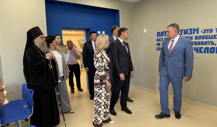 Евгений Первышов посетил линейку в обновленной школе №7