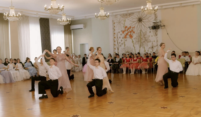 Гимназисты представили старинный бальный танец «Котильон».