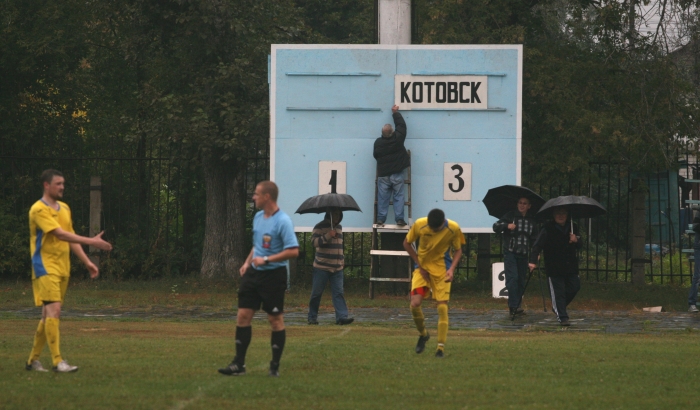 После перерыва тренер ДЮСШ - «Олимп» В.Г.Кусов заменил совершенно потерявшегося на поле инертного нигерийца Эммануэля на молодого и старательного Андрея Ясакова. Равная игра равных соперников, где мичуринцы пытались поддавить, а соперник играл на контратаках, продолжалась до 60 минуты. Потом случился какой-то, на мой дилетантский взгляд, конфуз в штрафной: защитник поскользнулся на мокром поле и въехал ногой в нападающего гостей. Пенальти котовцы реализовали чётко и ликовали так, как будто мундиаль выиграли. 30 минут - достаточное время, чтобы отыграться и вновь выйти вперёд. Однако, впервые в этом сезоне на поле не было лидера. Был старательный Терехов, был изрядно подуставший Кулаков, не играющий в полную силу из-за травмы Лукьянов, злой на партнёров Ясаков, но никого, кто мог бы найти нужные слова и погнать команду вперёд, не было.