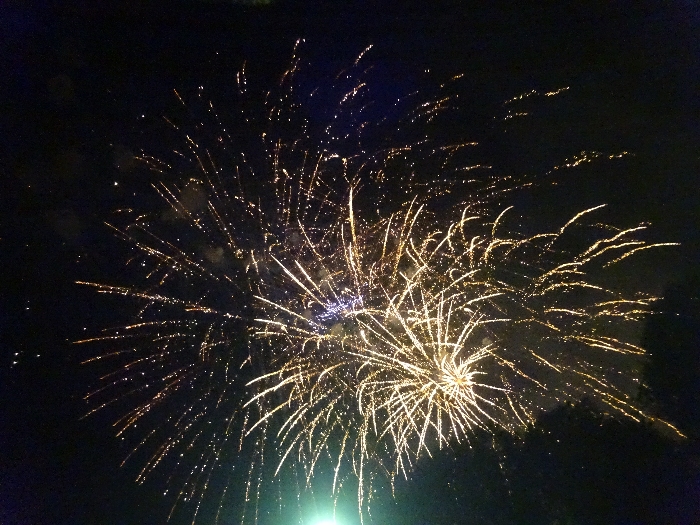 А примерно в 23:10 был дан первый залп. В небе над Мичуринском рассыпались яркие разноцветные огни. Бабахнули знатно - салют был на удивление разнообразный, красивый и долгий - чуть больше 20 минут. На этом официальная праздничная программа была окончена, а неофициальная ещё полночи продолжалась разнокалиберными компаниями на улицах и закоулках города.