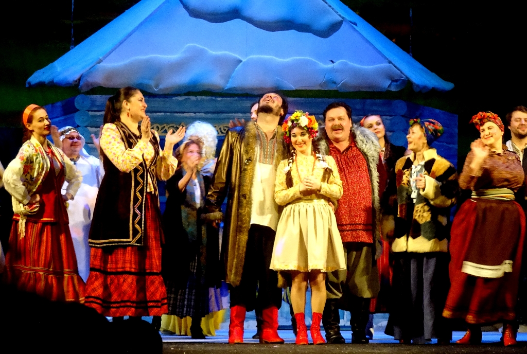 «Волшебная ночь» перенесла нас в сказочную гоголевскую Диканьку, где причудливо сплетается нехитрый казачий быт, украинская народная культура, местные суеверия и народные предания. В основе сюжета - «Ночь перед Рождеством», история любви кузнеца Вакулы ( актёр Эльдар Касумов) и Оксаны ( актриса Ксения Морозова), но с вкраплениями из других произведений Николая Васильевича Гоголя в виде воспоминаний парубка. Парубок, удобно устроившись на ступеньках с бутылкой, рассказывает то о панночке-ведьме и умершем от ужаса семинаристе из Киева Хоме («Вий»), то об утопившейся дочери сотника («Майская ночь, или Утопленница»). Его рассказы - то ли воспоминания, то ли последствия белой горячки после немереного употребления рассказчиком горилки. И когда утопленница бросается к парубку с просьбой найти злую мачеху-ведьму, становится понятно - всё-таки «белочка».