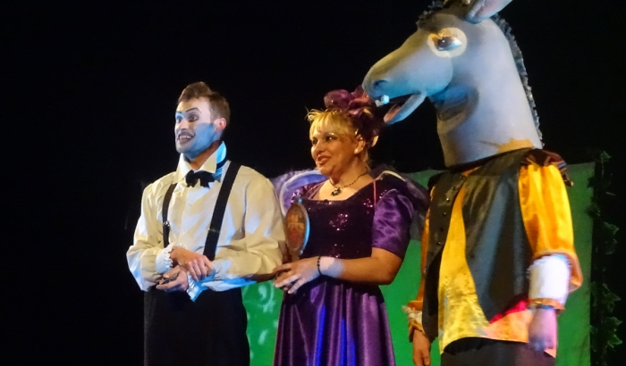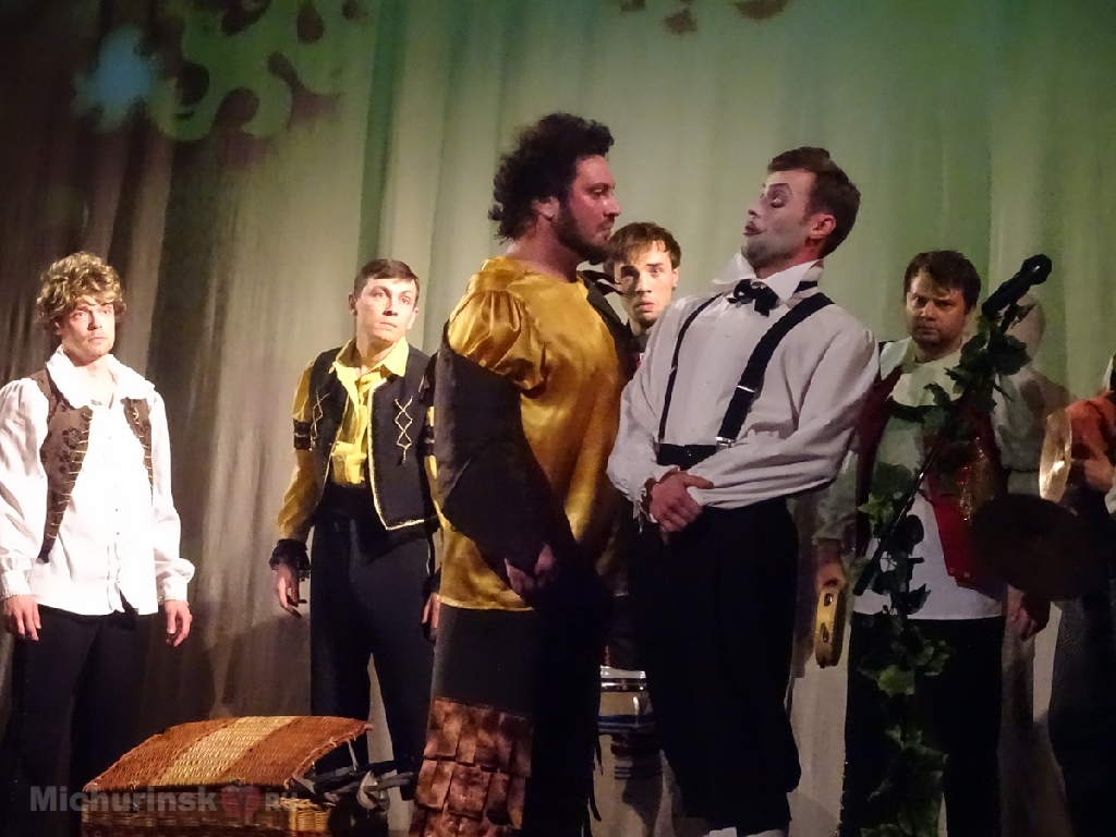 Шоу получилось на редкость шумным, насыщенным и, как всегда, непредсказуемым. Царь Оберон постоянно ссорится с Титанией из-за духа Пэка, который сам не знает, кому из них двоих служить. Предводительница фей Эльфа напропалую заигрывает с Пэком, афинские актеры готовят для царственной четы пьесу, чтобы, наконец, их помирить. Пьеса, конечно, о несчастной любви Фисбы и Пирама. Была бы, если бы не актер Основа с ослиной головой... Главы семейств Монтекки и Капулетти - друзья не разлей вода, а до мелочных ссор их жен им и дела нет. Нескромная Джульетта наставляет Ромео, как себя вести относительно неё, вездесущий Пэк обещает зрителям хороший финал этой, а торжественный "средневековый" бал на мгновения срывается на вполне современную клубную тусовку. А теперь добавьте сюда остроумные реплики героев, пикантный (местами) юмор, традиционные для "Бессонницы" песни и танцы и, конечно, интригующий финал - получится полная картина происходившего на сцене Мичуринского драматического театра в рамках арт-проекта то ли во сне, то ли наяву.