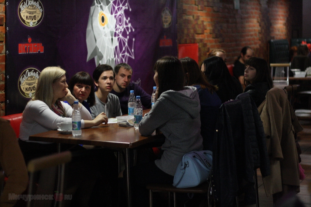 14 апреля в клубе «ПодОктябрём» стартовала новая интеллектуальная игра «Мозг Fight». Правила просты: есть несколько команд любой численностью. Каждой команде даётся комплект бланков: один бланк – один раунд. Игра идёт синхронно – ведущий задаёт вопрос, затем командам даётся определённое время на обсуждение и ответ, который игроки вписывают в специальную строку на бланке. После каждого раунда бланки собираются для подсчёта очков и озвучиваются правильные ответы. Один правильный ответ – один балл. Побеждает та команда, которая наберёт больше всех баллов. Ничего сложного… кроме непосредственно вопросов. Всего раундов 7 и, надо сказать, вопросы вполне на уровне «Что? Где? Когда?» То есть одним знанием не возьмёшь. В первом раунде было 5 вопросов, на обсуждение каждого из которых отведено по 30 секунд.