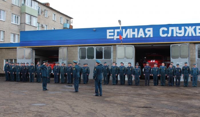 Сегодня утром по традиции в ПЧ-7 прошло торжественное построение: личный состав части и представителей аварийно-спасательного отряда г.Мичуринска поздравил временно исполняющий обязанности начальника ФГКУ "5 отряд федеральной противопожарной службы по Тамбовской области" Евгений Громов, с приветственным словом обратился председатель отдела по взаимодействию с Вооружёнными Силами, правоохранительными органами и тюремному служению иерей Игорь Орлов.