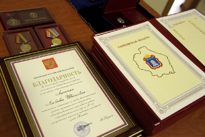 Как сообщил сайт Тамбовской областной Думы, 16 октября состоялось вручение государственных наград и премий области тамбовчанам, внесшим значительный вклад в развитие той или иной сферы жизни Тамбовщины. В торжественной церемонии участвовали глава администрации региона Александр Никитин, заместитель председателя областной Думы Евгений Матушкин, федеральный инспектор Николай Байбеков.Среди награждённых были и наши земляки-мичуринцы.