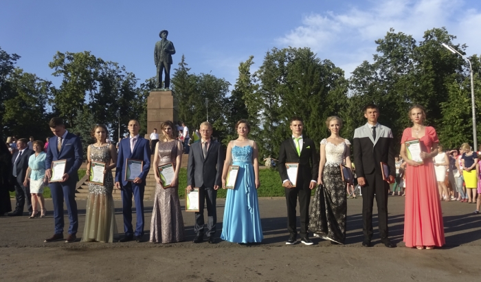 Вечером 24 июня площадь им. И.В. Мичурина переливалась всеми цветами радуги. Девушки в ярких нарядных платьях и юноши в строгих элегантных костюмах - вчерашние школьники (346 питомцев десятка мичуринских школ) - собрались на первый общегородской выпускной бал. Выпускников-2016 поздравили глава города Александр Кузнецов, епископ Моршанский и Мичуринский Гермоген и ректор Мичуринского ГАУ Вадим Бабушкин. На торжественном сборе были отмечены лучшие выпускники, отличившиеся, как ни странно, не учебными «заслугами», а своими талантами в спорте, искусстве и общественной деятельности. За свои достижения эти ребята получили почётные грамоты из рук градоначальника Александра Кузнецова.