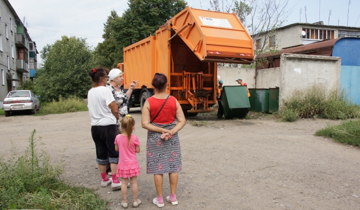 Небольшой двор в Кочетовке. На площадке четыре контейнера, которые вывозятся ежедневно. «Теперь у нас очень чисто!», - рассказывает местная жительница Зинаида Сергеевна. «Мух нет, запаха нет. У меня угловая квартира, площадка рядом, раньше я окна открыть не могла, а сейчас свет увидели. Хорошо вывозят, каждый день», - характеризует работу «ТЭКО-Сервис» женщина и тут же интересуется процессом помывки.