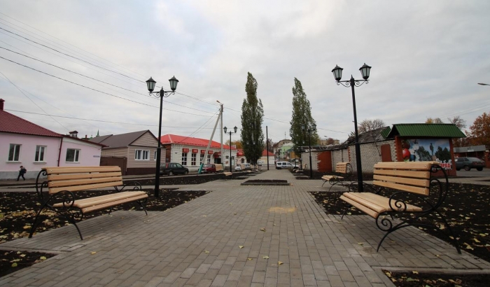 В новом сквере на пересечении улиц Интернациональной и Тамбовской установлены девять скамеек, освещают территорию 11 фонарей. Скоро здесь появятся урны, а по весне посеют газонную траву.