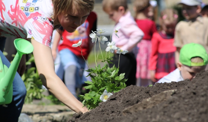 Воспитанники детского сада «Рябинушка» вместе с родителями построили альпийскую горку