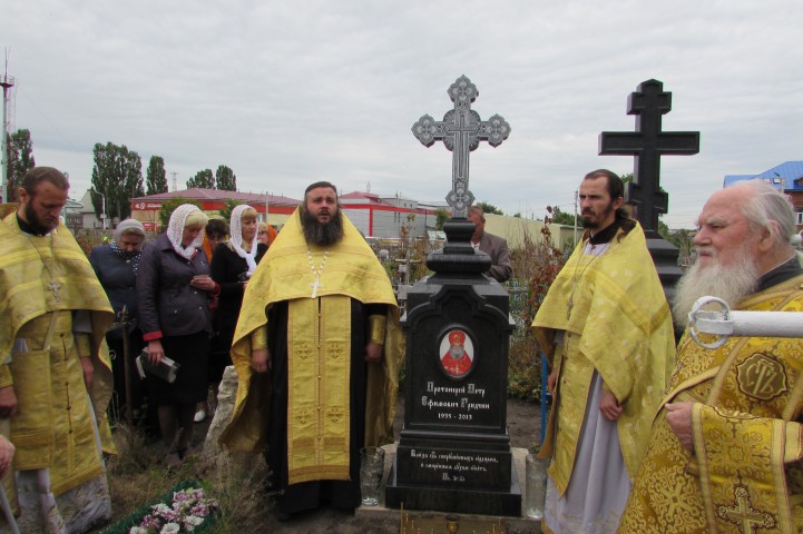 Назрела и явная потребность в реконструкции значимых некрополей. Над могилами священников, прах которых покоится за алтарем Скорбященского храма, постепенно начали устанавливать новые памятники. Было принято решение, что памятники должны быть близки по исполнению, чтобы создавать своеобразный комплекс. За основу были взяты дореволюционные памятники, представляющие собой надгробный камень с крестом. В прошлом году был установлен памятник диакону Александру Силантьеву и его матушке Серафиме Сергеевне. А уже в этом году, в конце июня, состоялось освящение памятника на могиле протоиерея Петра Гридчина, почившего в 2013 году.