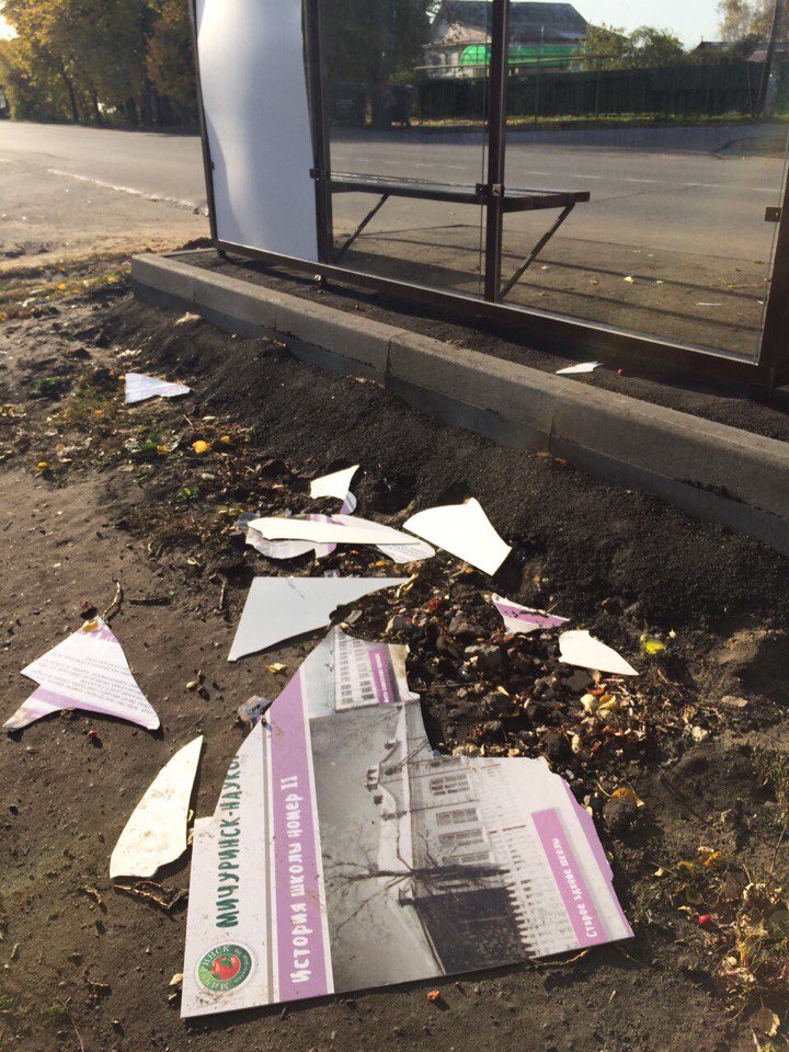 Новые мичуринские остановки, которые даже еще не везде до конца установлены, подверглись нападению настоящих вандалов. Так,вновь построенный павильон в микрорайоне Донское предстал в изуродованном виде. Неизвестные "свиньи", по -другому назвать этих недочеловеков язык не поворачивается, сломали пластик, разбили стекло и сорвали интерьерную пленку, на которой содержалась история школы №11. Администрация города взывает к нам, жители наукограда: "Уважаемые мичуринцы, если у вас нет желания созидать, то просим вас - не разрушайте то, что создают люди, любящие свой город".
