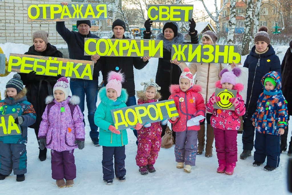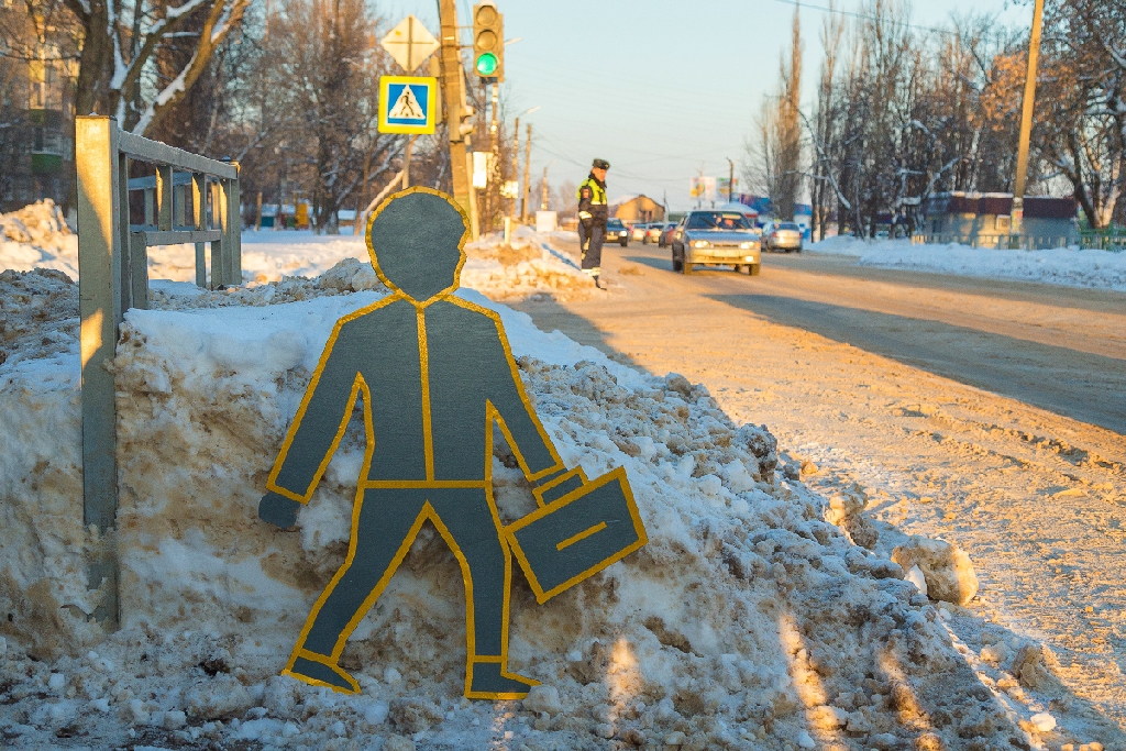 Морозным февральским вечером ребятишки в сопровождении старших товарищей из отряда юных инспекторов дорожного движения «Светофор» (школа №15), а также педагогов и родителей вышли к пешеходному переходу, находящемуся в непосредственной близости от двух крупных образовательных учреждений и установили изготовленные манекены со светоотражающей окантовкой с двух сторон пешеходного перехода. Это создаст ощущение, что ребенок собрался переходить проезжую часть дороги и вынудит водителей снижать скорость перед пешеходным переходом. Также в ходе проведения мероприятия юные борцы за безопасность на дорогах вручили прохожим листовки, памятки и календари с правилами безопасного поведения на дороге и попросили их строго следовать требованиям ПДД, которые, в свою очередь, искренне благодарили детей и клятвенно обещали быть внимательными и всегда соблюдать Правила дорожного движения.