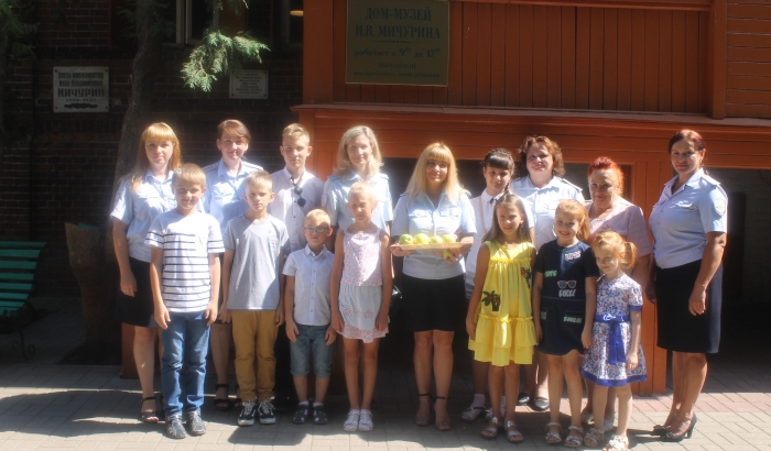 Однако сотрудники линейного отдела не ограничились только вручением школьных принадлежностей. При участии члена Общественного совета при ЛО МВД России на станции Мичуринск Людмилы Волокитиной была организована увлекательная экскурсия в дом-музей И.В. Мичурина. В ходе экскурсии, приглашенные, гости узнали о жизни Ивана Владимировича Мичурина, о его вкладе в развитие генетики и ягодных культур. Особое внимание Людмила Васильевна обратила на то, что при помощи новых разработанных методов селекции И.В. Мичурин создал 354 новых высокоценных сорта яблони, груши, вишни, сливы, черешни, абрикоса, миндаля, ореха и различных ягодных растений. В завершении экскурсии ребята и присутствующие сотрудники линейного отдела, смогли лично насладиться плодами спелых яблонь, которые создал И.В. Мичурин. Дети отметили, что лекция, проведенная хранителем музея Людмилой Волокитиной, была для них очень интересна и познавательна, а также сказали, что обязательно поделятся полученной информацией со своими одноклассниками.