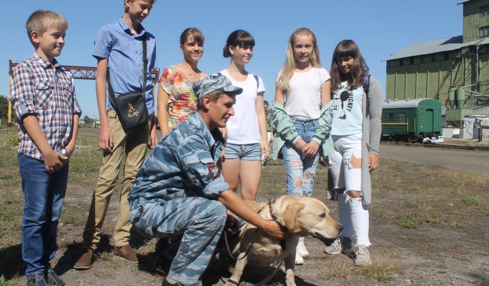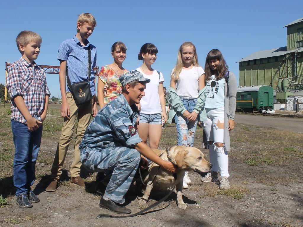 Встреча началась со знакомства ребят с инспектором-кинологом ЛО МВД России на станции Мичуринск прапорщиком полиции Александром Стукаловым и его боевым другом лабрадором по кличке «Глосси». Александр Александрович рассказал присутствующим об особенностях службы своего подразделения, о направлениях, в которых применяются четвероногие питомцы. После чего на территории хоз.двора станции Мичуринск-Уральский инспектор - кинолог разложил несколько, специально приготовленных коробок, в одной из которых заранее спрятал имитатор наркотического средства. Ребята своими глазами смогли увидеть, как лабрадор по кличке «Глосси» осуществляет поиск наркотика и успешно его обнаруживает, сигнализируя своему хозяину, присев рядом с находкой. «Глосси» сразу же стал любимцем среди ребят, чем заслужил громкие аплодисменты.