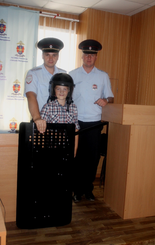 После лекции слово было предоставлено внештатному инструктору по огневой подготовке старшему лейтенанту полиции Дмитрию Сухареву, который продемонстрировал школьникам образцы стрелкового оружия, стоящего на вооружении полиции, и средства защиты от него, рассказал о возможностях этого вооружения и его тактико-технических характеристиках. Средства бронезащиты и учебное оружие можно было примерить, попробовать разобрать и собрать учебные пистолеты и даже сфотографироваться на память.