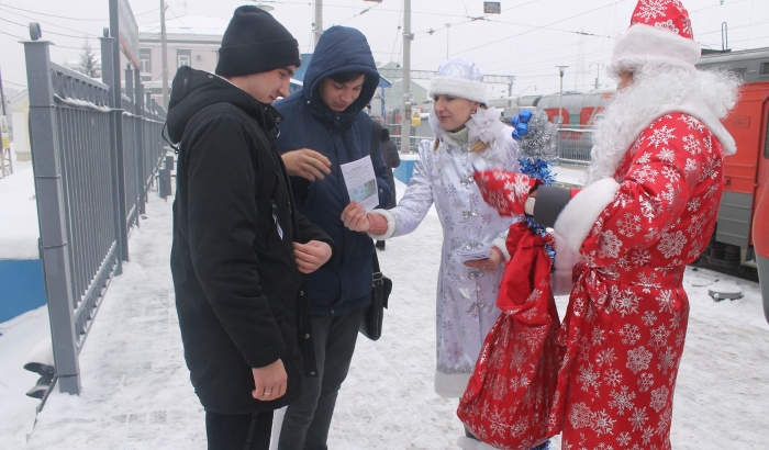 На мичуринских вокзалах Дед Мороз в погонах раздавал новогодние сувениры