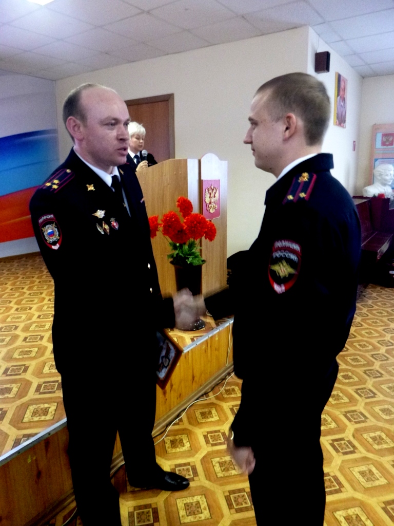 Накануне Дня защитника Отечества сотрудники городской полиции принимали поздравления от коллег и приглашённых гостей. В адрес городских полицейских прозвучали слова признательности от представителей ветеранской организации ОМВД, членов Общественного совета П.В. Шушпанникова Е.В. Ивановой, И.А. Ионицы.
