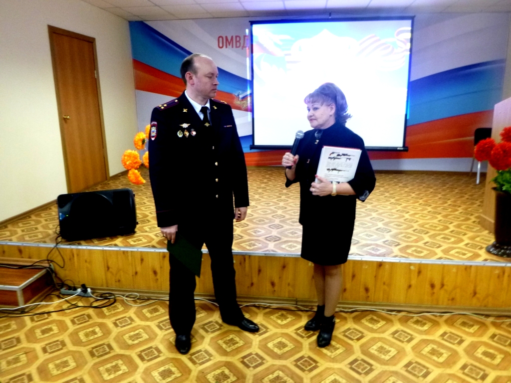 Праздничный концерт украсили музыкальные номера, подготовленные приглашёнными артистами, членами отряда «Юные друзья полиции», сотрудниками отдела – Ю. Семёновой, И. Никульшиной, Ю. Белугиным, Н. Сорокинской.