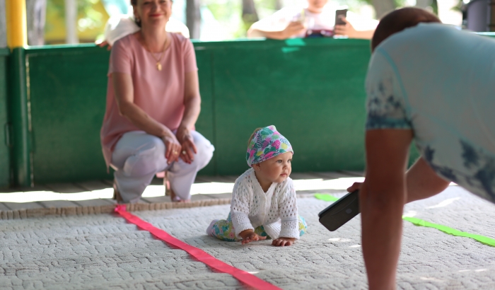 Самые маленькие участники «гонки» (6 месяцев - 1 год) стартовали в номинации «ползунки». Малыши, которые и ходить то не умеют, уверенно двигались к своей первой победе. Следующим этапом соревнований стал «Забег ходунков» (от 1-3 лет), дети, которые уверенно держатся на ножках и могут передвигаться без помощи родителей. Чтобы они не отвлекались и скорее добрались до финиша, родители привлекали их внимание любимой игрушкой, ключами от автомобиля, смартфонами. По итогу соревновательного забега определились чемпионы в трех возрастных категориях: Машенька Кузнецова (11 месяцев), Аннушка Грачева (1 год 10 месяцев), Илюша Лозовик (2 года 1 месяц).