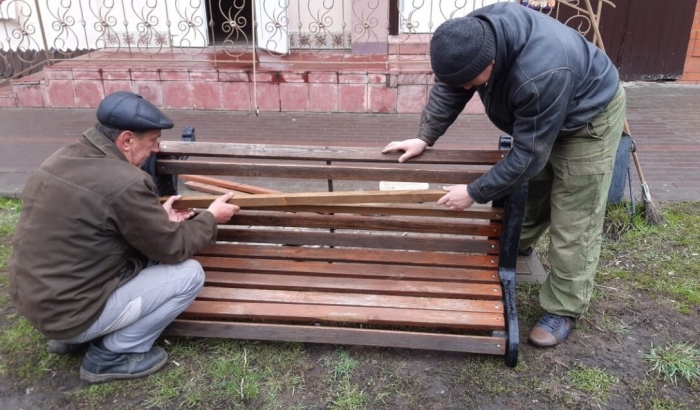 Сотрудники «Зеленхоза» отремонтировали скамейки в скверах Мичуринска и побелили деревья