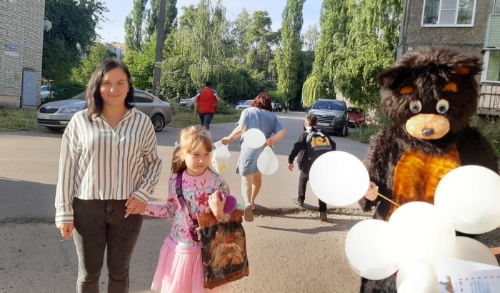 Госавтоинспектор, «медведь» и воспитатели напомнили родителем мичуринских дошколят о мерах безопасности
