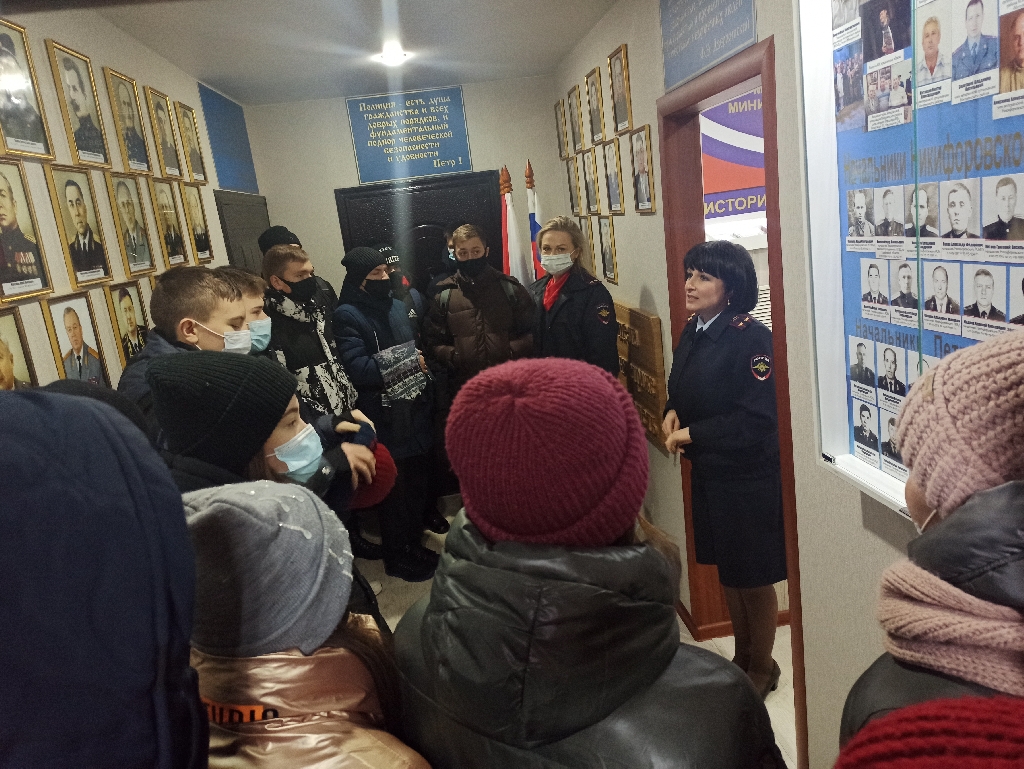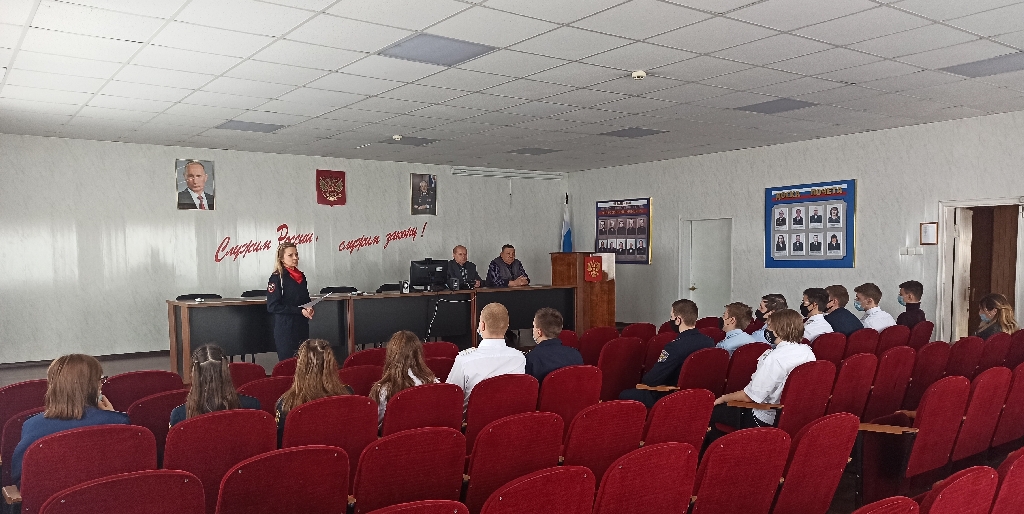 Начальником штаба подполковником внутренней службы Л.А.Нестеровой, инспектором АПиК штаба старшим лейтенантом внутренней службы А.И. Измайловой совместно с членами Общественного совета (пенсионерами МВД) В.И.Кочановым и А.С.Хлебниковым студентам колледжа было рассказано о работе в полиции. Ветераны правоохранительных органов повествовали о служебных буднях, рассказывали интересные истории из практики.