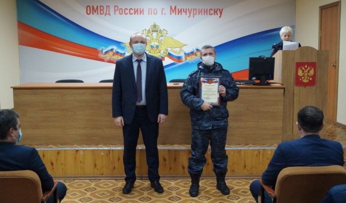 За образцовое исполнение служебных обязанностей сотрудники сводного отряда полиции были поощрены руководством УМВД области и ОМВД России по г. Мичуринску.