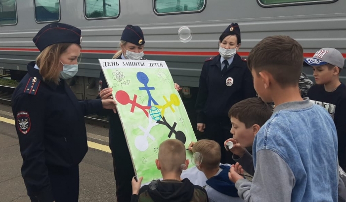 1 июня в международный День защиты детей сотрудники линейного отдела решили провести промоакцию, устроив небольшой праздник для маленьких пассажиров. Местом проведения стал вокзал станции Мичуринск-Уральский, где на плакате с изображением флага-символа праздника ребятам предложили изобразить, что для них значит счастливое детство. Кто-то рисовал цветы, солнце, веселых человечков или героев любимых мультфильмов, а кто-то написал очень важные для нас всех слова: «МИР, ДОБРО, СЧАСТЬЕ».