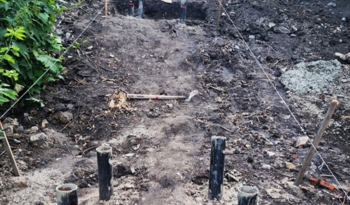 Уже демонтирован старый лестничный спуск в районе дома № 335 по улице Набережной. Здесь специалисты установили винтовые сваи. Именно они станут основой нового каркаса лестничного спуска. Готовится и временная переправа через Каменку в районе Молодёжного пляжа. Далее здесь по проекту появится мост, ширина его составит более двух метров.