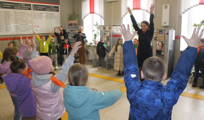 Дети в благодарность за полезное занятие устроили на перроне вокзала небольшой музыкальный флешмоб под девизом «Мы за здоровое детство!».