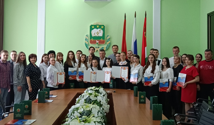 В преддверии Дня молодежи в администрации города прошла традиционная церемония награждения талантливой молодежи - юношей и девушек, наиболее активно проявивших себя в учебе, творчестве, спорте, общественной жизни. С праздником ребят поздравили глава города Максим Харников и председатель Мичуринского городского Совета депутатов Константин Горлов.