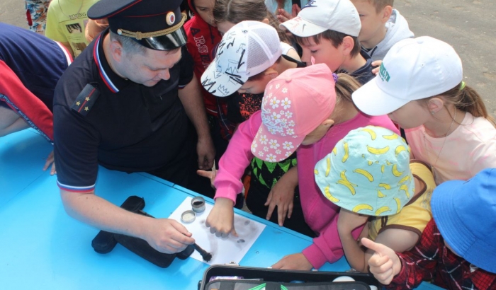 После викторины слово перешло к эксперту ЭКГ линейного отдела Антону Шевякову, который познакомил ребят с понятием «Криминалистика» и спецификой своей деятельности. Антон Викторович продемонстрировал детям свой чемодан криминалиста и рассказал о том, для каких целей используются приспособления из него. Особый интерес у ребят вызвала наглядная демонстрация выявления отпечатков пальцев.