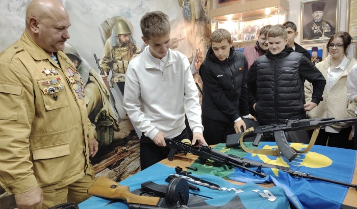 В комнате «Боевой Славы» возобновились встречи ветеранов боевых действий со школьниками и студентами г. Мичуринска и Мичуринского округа. Беседу с учащимися школы №1 провели ветеран боевых действий в Афганистане, летчик, подполковник, кавалер ордена Красной Звезды В.М. Воротников и участник специальной военной операции И.М. Хрулев.