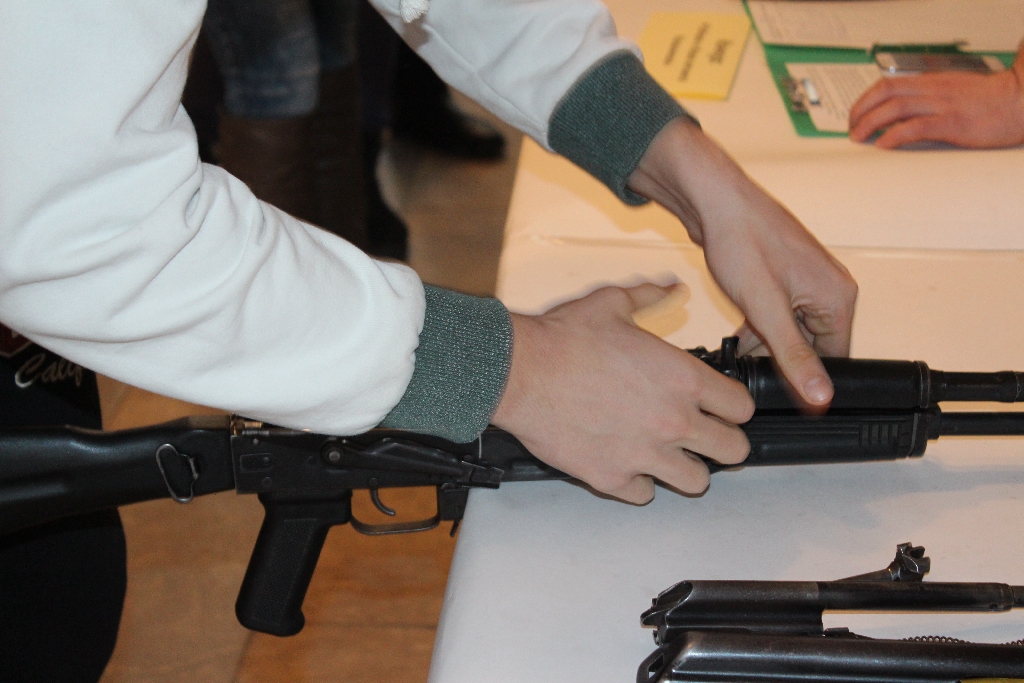 Сегодня прошли городские военно-спортивные соревнования «Одиночная подготовка воина-разведчика». В игре приняли участие 8 команд. Состязались школьники в 4-х видах: «Разборка и сборка автомата Калашникова», «Снаряжение магазина автомата Калашникова», «Тест на зрительную память» и «Исторический конкурс».