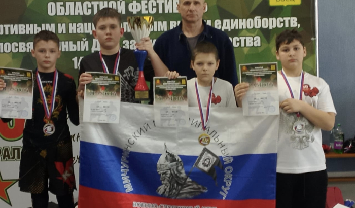 Команда Мичуринского муниципального округа спорт ивный клуб "Пересвет", руководитель Владимир Дмитриевич Ремнев, отлично выступила на открытом областном фестивале по спортивным и национальным видам единоборств по виду СБЕ посвященных Дню защитника Отечества (6+).